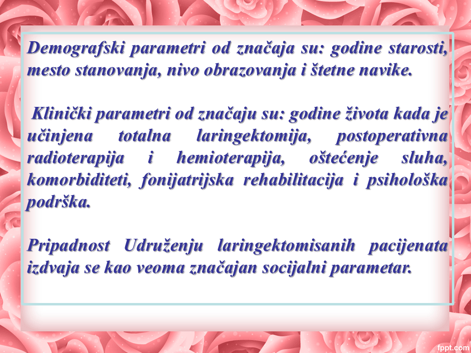 „Kvalitet života pacijenata sa karcinomom larinksa"